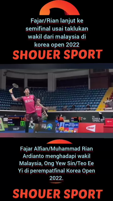 fajar/rian lanjut ke semifinal usai taklukan wakil dari malaysia di korea open 2022 #Snack2Gather