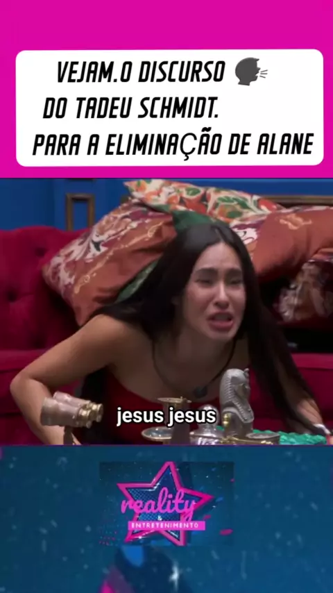 Discurso completo de VEJAM.O DISCURSO š£ DO TADEU SCHMIDT. PARA A ELIMINAĆĆO DE ALANE #adeuschmidt para a #eliminação eliminação de #Alane Alane! #kwainobbb #EstrelaDeFamĆlia