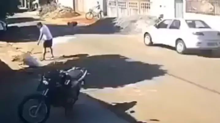 Vídeo flagra homem atirando na cabeça de vizinho que varria sua calçada Um homem de 41 anos foi baleado na cabeça pelo vizinho, de 61 anos, por estar limpando a calçada e fazendo o corte de uma árvore em Chapadão do Sul (MS). O caso aconteceu neste domingo (24) Nas imagens, é possível ver que a vítima, de camiseta branca, estava limpando a calçada do vizinho, quando ele aparece, troca algumas palavras e entra em sua residência. O homem de branco continua limpando o local com a ajuda da filha.