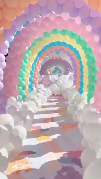 Decoração maravilhosa Arco íris 🐻 🌈🌈 Gostaram? Então curte e siga nosso perfil para receber mais vídeos assim🌈🌈 #decoraçao #ARCOÍRIS #festas #festa #balao