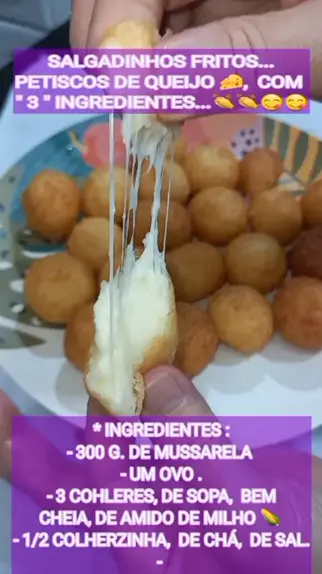 #salgadinho, #salgadinhodequeijo, #salgadinhodemussarela, #salgadinhocomtresingredientes,