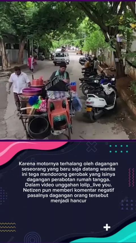 tak terima motornya dihalangi wanita ini mendorong gerobak dagangan #Dorong #gerobak #wanita #News