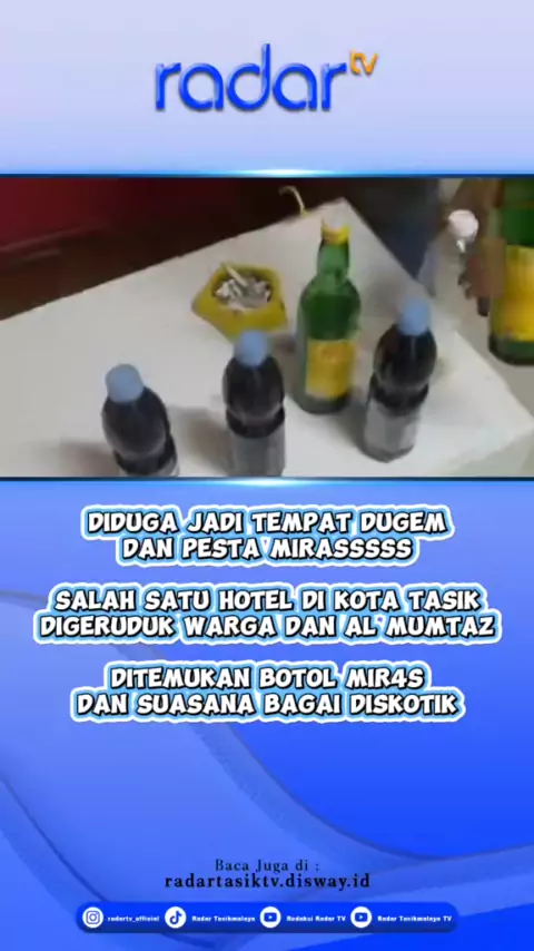 Kepergok pesta mir4s dan sedang dugem, salah satu hotel di Kota Tasikmalaya diciduk warga dan Al Mumtaz. #almumtaz #wargatasik #ciduk #gerebek #hoteltasik #kotatasik #raziahotel #miras #kotasantri #radartasik # #beritatasikmalaya #radartv #radartvtasik #beritatasikmalayahariini #tasikupdate #tasikpride #kotatasikmalaya #tasikmalaya #beritaviral #berita #beritaterkini #infotasik #tasik #tasikasik #viral #viraltasik #videoviral