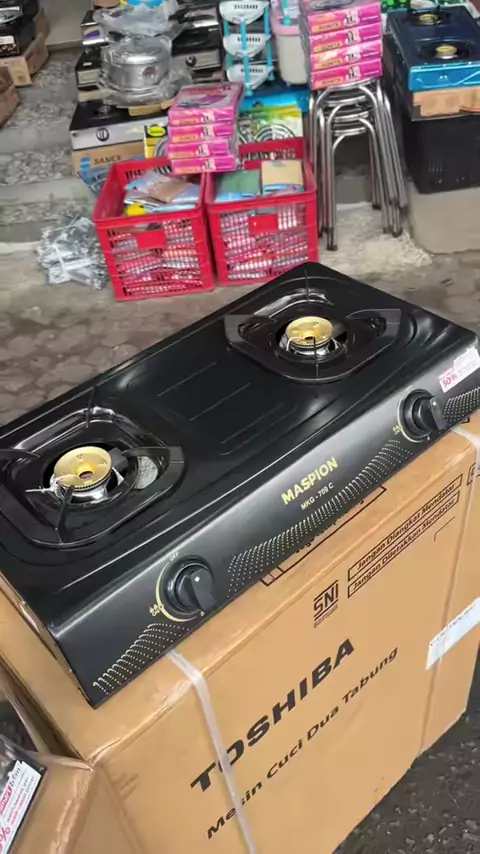 Kompor Maspion 2 Tungku, Body Teflon dan Stainless steel, Nyala api biru, hemat gas hingga 30%, Burner awet tebal, body tebal kuat tahan panas, Garansi resmi.. Monggo bisa merapat ke toko / Order online hubungi kontak di bio #tokoelektronikmojokerto #kompor #komporgas #kompormurah #kompor2tungku