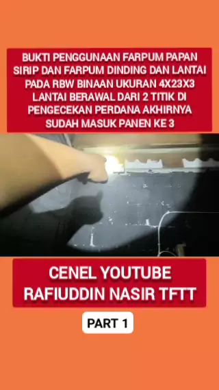 BUKTI PENGGUNAAN FARPUM PAPAN SIRIP DAN FARPUM DINDING DAN LANTAI PADA RBW BINAAN UKURAN 4X23X3 LANTAI BERAWAL DARI 2 TITIK DI PENGECEKAN PERDANA AKHIRNYA SUDAH MASUK PANEN