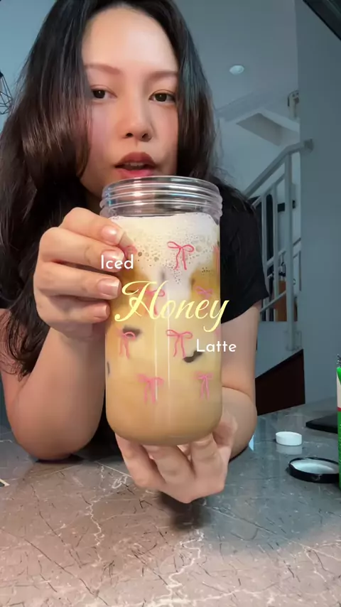 Iced honey latte #homecoffee