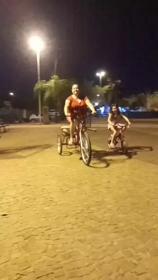 Vovó brincando de bicicleta na pracinha com os meus filhos e depois fomos tomar sorvete... Que noite maravilhosa... Aqui está calor e aí onde vocês moram está como? #pracinha #brincadeiradevó #bicicleta #triciclo