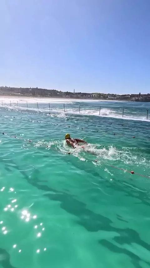 O mergulho de borboletas na piscina à beira-mar é tão bonito. Sinta o momento de natação sedoso!