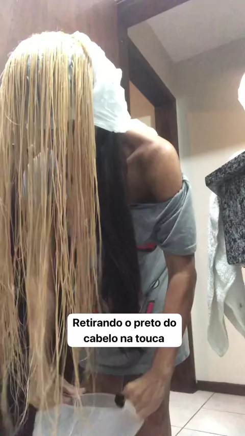 Descolorindo o cabelo na touca . Fiz essa decapagem sozinha ,querem ver como ficou ? #descolorindoocabelo #luzesnatouca #Loiro
