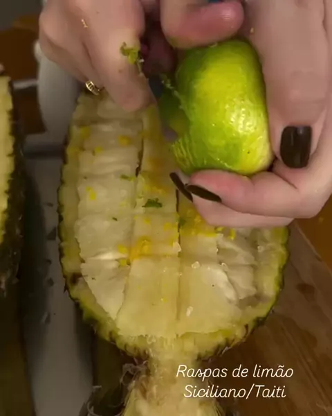 Abacaxi alcoólico 🍍🍸 Corte o abacaxi em cubos, adicione uma pitada de sal grosso, raspas de limão à gosto, meia dose de vodka ou cachaça. Consumir gelado!! Consuma com moderação! @deboraviana3 #receita #carnaval #drink #drinkabacaxi #reel