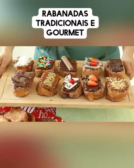 INGREDIENTES 2 baguetes de pão francês amanhecido 6 ovos 2 xícaras (chá) de leite (480ml) 1 xícara (chá) de leite condensado 1 colher (sopa) de essência de baunilha (15ml) Óleo o suficiente para fritar Para polvilhar 1/2 xícara (chá) de açúcar (90g) 1 colher (chá) de canela em pó Coberturas/ sugestões: Doce de leite Creme de avelã Brigadeiro Morangos Nozes Leite Ninho Caramelo salgado Kinder Bueno Amendoim #Receita #rabanada #rabanadagourmet #receitadenatal #facaevenda