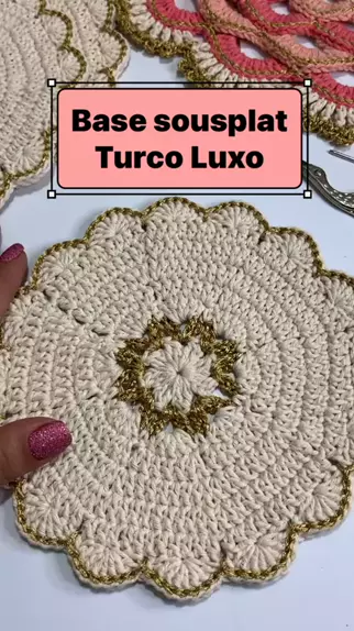 Tutorial base do sousplat Turco Luxo! Vídeo aula disponível no meu canal Renata Dutra crochê Bora crochetar? #viral #croche #YouTube