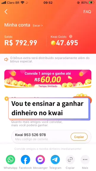 É novo no aplicativo? Use esse código Kwai953526978 pra começar a ganhar dinheiro aqui no aplicativo #kwaibonus