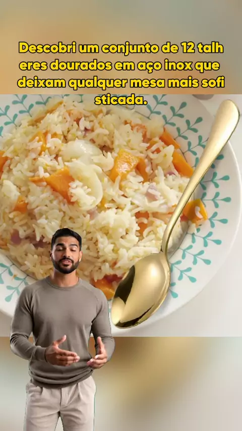 Transforme suas refeições com talheres dourados de aço inox #TalheresLuxo #DecoraçãoMesa #AçoInox #JantarEspecial #TalheresDourados