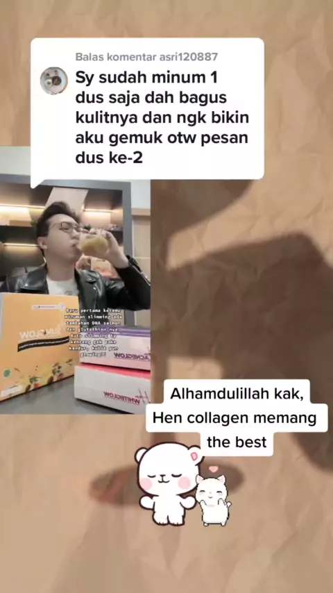 Membalas @asri120887 Alhamdulillah kak, semoga box kedua hasilnya lbh dahsyat πππ#hen#collagen#kolagen#hencollagen#henkolagen#collagendrink#minumancollagen#DNAsalmon#Lglutathione#glutathione#slimnglow#acnenglow#whitenglow#slimandglow#acneandglow#whiteandglow#collagendiet#collagenpemutih#kolagendiet#rennystore