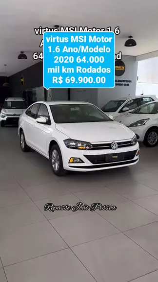 virtus MSI Motor 1.6 Ano/Modelo 2020 64.000 mil km Rodados R$ 69.900.00 Tel.83 99806 5607 #veículos #seminovos #loja #usados #Vendedor