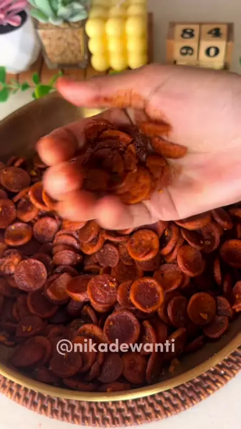 Cobain deh sosis dibikin keripik gini…..‼️ ✨KERIPIK SOSIS DAUN JERUK✨ Bahan : - 1 bungkus sosis Bumbu Seasoning : - 9 bawang putih cincang - 9 daun jeruk iris - 1 sdm bumbu atom - 1 sdm gula pasir - 1 sdm bubuk cabe halus - 1 sdm bubuk cabe kasar(boncabe) #Sosis #sosisdaunjeruk #keripiksosis #keripiksosisdaunjeruk #cemilan #cemilanrumahan