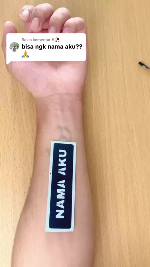 Membalas @!!🥀 Tattoo nama aku udah nih! Selanjutnya mau bikin nama siapa lagi? Wkwkwk#gayadi#umkmindonesia#tattoo#tattootemporary#asiantattootemporary#artatto#janganlupamenato