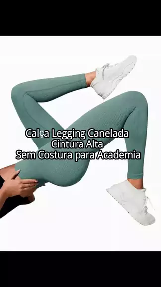 Calça Legging Canelada de Cintura Alta Sem Costura para Academia Feminina, Elástica #lojashopkwai