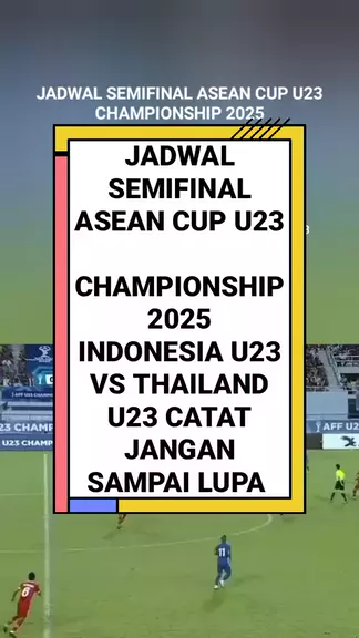 Jadwal pertandingan Semifinal ASEAN Cup U23 Championship 2025, Indonesia U23 vs Thailand U23 pada Jumat, 25 Juli 2025, Pukul 20:00 WIB Live Streaming Indosiar, SCTV, Vidio dan Nex Parabola pertandingan tersebut akan berlangsung di Stadion Gelora Bung Karno. #SnackCerdaskanDesa #SemifinalAFFU23 #IndonesiaU23 #ThailandU23