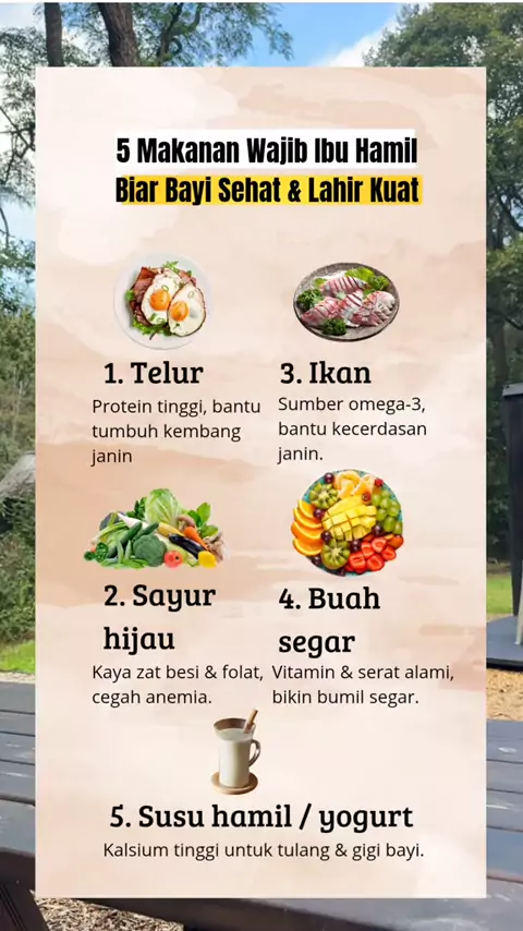 Mau bayi sehat, kuat, dan cerdas? ๐ธ Nih Bun, 5 makanan simpel tapi penting banget buat bumil #IbuHamil #KehamilanSehat #BumilBahagia #NutrisiIbuHamil #TipsBumil