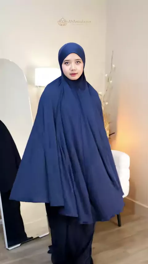 Mukena jersey navy dengan penutup dagu 🤍 Nyaman, adem, dan jatuhnya cantik. Warnanya calm tapi tetap classy—pas banget dipakai terawih biar ibadah makin khusyuk. Yang mau samaan, cek keranjang kuning 💛 #rekomendasimukena #mukenaterawihan # #mukenajersey