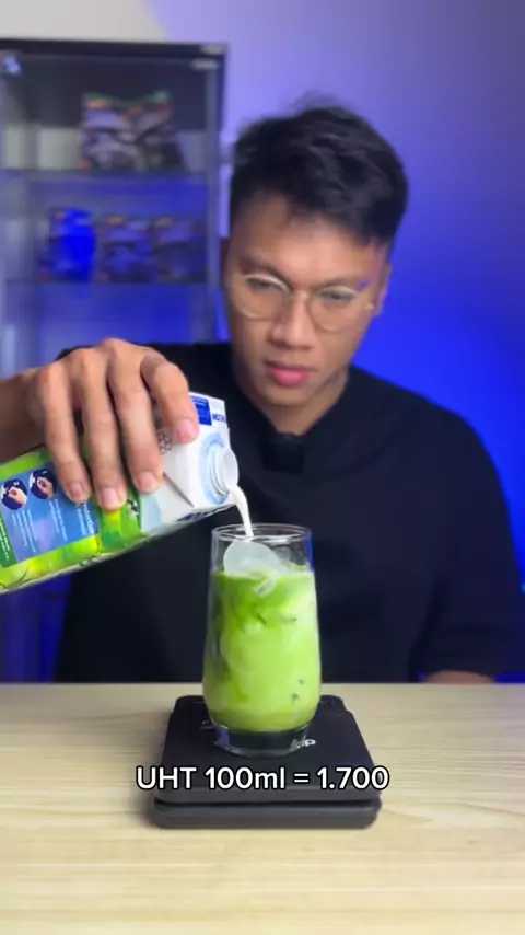 Green tea latte Modal = 2.300 Jual = 10.000 Green tea 60ml = 300 Es batu = 300 Uht 100ml = 1.700 #greentea #latte #resep #tea