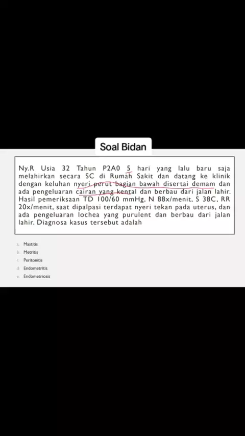 Soal Bidan - Keluhan nyeri perut bawah post SC 5 hari#pppkbidan2023#ukombidan2023#ukombidan#soalpppk#wawancarapppk#sosiokulturalpppk#lulustes#soalcpns#soalbidan#twk#tiu#skd#manajerial#skbbidan