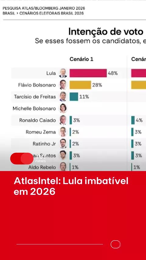 #Repost @redetvt —— SEGUE O LÍDER | Pesquisa Atlas/Bloomberg divulgada nesta quarta-feira (21) confirma a liderança do presidente Luiz Inácio Lula da Silva (PT) em todos os cenários testados para 1º e 2º turno das eleições. Lula venceria as eleições em 1º turno contra Tarcísio de Freitas (Republicanos) caso Flávio Bolsonaro (PL) não fizesse parte da disputa. O petista continua vencendo todos os concorrentes nos oito cenários de segundo turno. Lula tem os mesmos 49% de intenção de voto contra