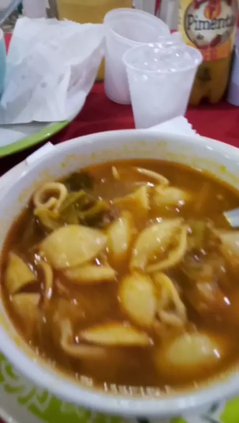 tomando uma sopa depois do trabalho no restaurante e tudo de bom