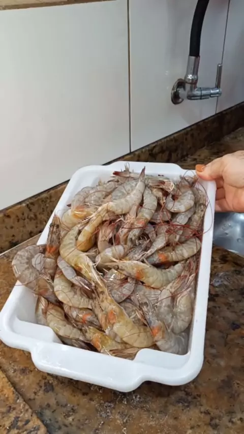 Limpando camarão
