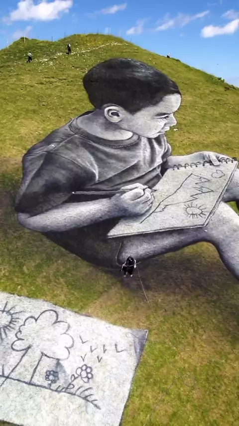 #snack #viral #life #travel is a contemporary artist famous for his huge nature paintings made with a biodegradable paint he created. Forbes listed him among the top 30 influential people under 30 in art and culture in 2019. He is a pioneer in the art of painting on grass and uses a special environmentally friendly paint made of water, chalk, charcoal, and casein. His art, visible from the sky, lasts for a few weeks before vanishing naturally. 📍Villars-sur-Ollon, Switzerland