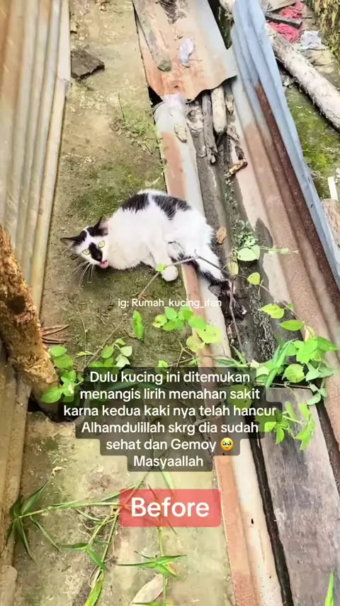 Bismillah Ini adalah kisah jojoy Waktu awal di temukan jojoy berada dalam sebuah selokan Ia tak bisa berjalan karna kedua kaki nya hancur di duga terlindas kendaraan Ia menangis lirih memohon pertolongan Sedih tak terbayang kan betapa kuat nya ia menahan sakit selama ini Lalu kami membawa jojoy ke klinik hewan utk mendapatkan pengobatan Menurut dokter kaki jojoy sdh rusak dan harus di angkat agar infeksi tak menyebar Lalu jojoy di rawat bbrpa hari utk perisapan operasi amputasi kedua kak...