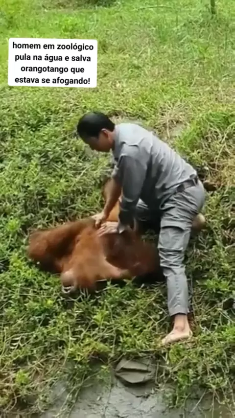 Um cuidador de um zoológico saltou ao fosso dos orangotangos para resgatar um que caiu depois de um visitante lançar comida ao recinto. O valente guardião logrou salvar a vida do animal realizándole reanimação. #noticias #orangotango #zoologico #sejacriador #Natureza