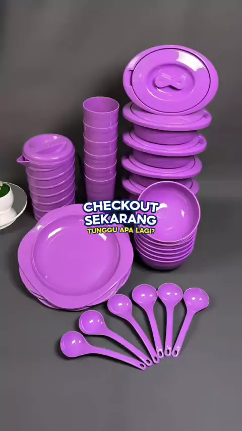 paket lengkap alat makan wadah perasmanan piring mangkuk gelas teko sendok plastik 🥰 praktis banget yuk di checkout #RacunShopee #peralatanmakan #vir