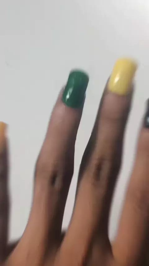 Mix kutek hitam, kuning, hijau dan orange keren uwuuu banget hasilnya #nailart #nailartist #kutek #setkutek More