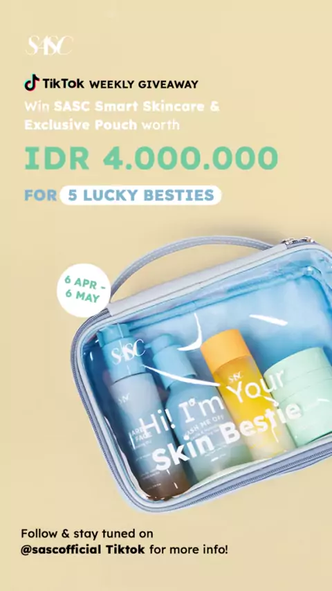 ❗️GIVEAWAY ALERT WORTH 4JT ❗️Mau dapetin SMART Skincare & Exclusive Pouch SASC? Gampang banget! Follow SASC untuk ketentuan & detailnya mulai dari 6 April 2022 ya! Stay tuned🥳 #giveaway #bagihadiah #gratis #SASCSmartSkincare #YourSkinBestie