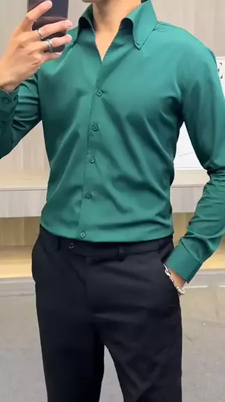 Camisa Masculina Blusa Social Masculina Slim Fit Luxo Manga longa Camiseta Verde
