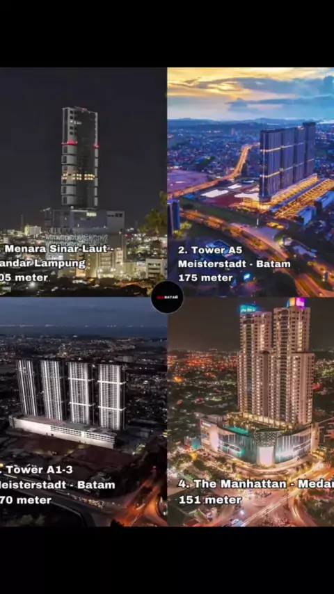 馃嚠馃嚛 Gedung paling tinggi di Sumatera 馃敟馃敟 Berikut adalah gedung tertinggi atau skyscraper yang ada di regional Sumatera: 1. Menara Sinar Laut di Bandar Lampung dengan tinggi 205 meter 2. Meisterstadt Tower A5 di Batam dengan tinggi 175 meter 3. Meisterstadt Tower A1-3 di Batam dengan tinggi 170 meter 4. The Manhattan di Medan dengan tinggi 151 meter Batam menjadi kota pemilik skyscraper terbanyak di luar pulau Jawa.