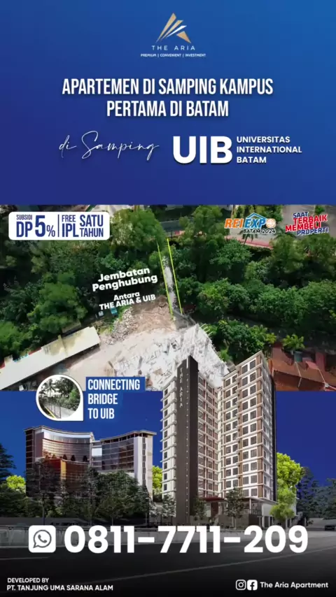 🇮🇩 The Aria Apartment hadir di REI EXPO BATAM 2024. Apartment disamping Kampus PERTAMA di Batam Dapatkan Apartemen Impian Anda sekarang dengan penawaran spesial kami! ✅Free IPL 1 tahun ✅Subsidi DP 5% Keuntungan berinvestasi di The Aria Apartment: 🗺Lokasi strategis 🎓Bersebelahan dengan kampus UIB ↔️Terhubung langsung oleh connecting bridge ekslusif 🏗 Progress pembangunan sudah lantai 7 KUNJUNGI BOOTH KAMI 🗓 : 23 Feb - 03 Maret, 2024 📍@grandbatam #batam #sscbatam #kotabatam #ariaapartmen...