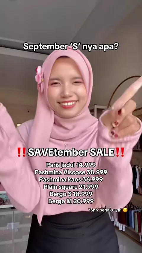 Siapa nih yang dari kemarin nanyain promo promoo terusss???? 🧐 Sekarang ada promo#SAVEtember SALE 🤩‼️ Snk berlaku ya! Berikut snk nya 😘 ini tnc - Pemesanan khusus melalui W A minVe - Tidak ada minimal order - Harga belum termasuk ongkir (cek ongkir bisa dibantu minVe) - Promo berlaku dari mulai tanggal 27-30 September 2025 - Wajib follow akun sosial media Reve Hijab ( & ) - Screenshot dan kirimkan ke minVe untuk claim promonya! ** Minimum pembelian 20 pcs (FREE Scrunchie...