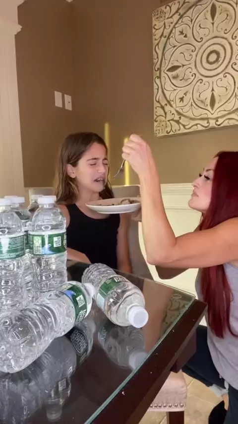 Eu a fiz experimentar escarola. Ela sempre precisa de água quando come algo novo # # motherdaughter # escarola