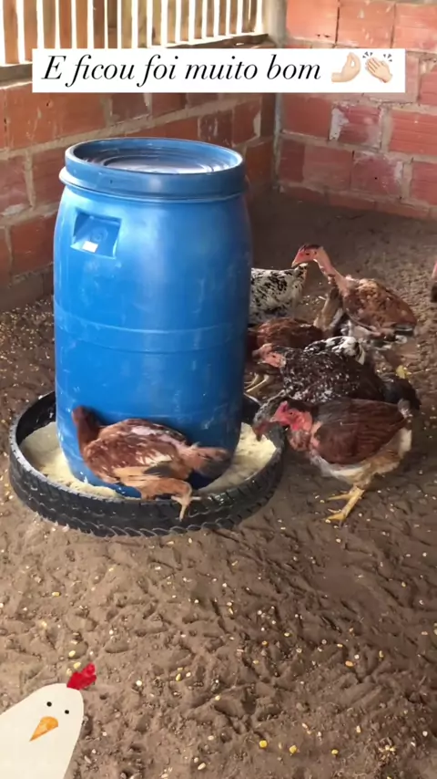 🐓💡 Criatividade que alimenta Com um tambor de plástico e um pneu, meu marido fez um comedouro resistente e prático para as galinhas. Aqui na Chácara Oliveira, a gente aproveita, reutiliza e cria soluções que facilitam o dia a dia no campo. Porque viver na chácara também é sobre usar a criatividade pra cuidar melhor dos nossos animais. 💚 #comedouro #galinhas #criacaodegalinha #granja #milho