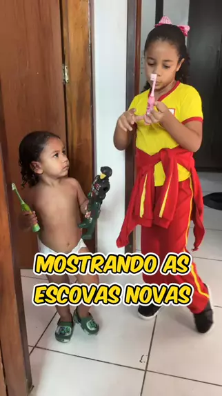 Lucas e Marina mostrando as escovas novas