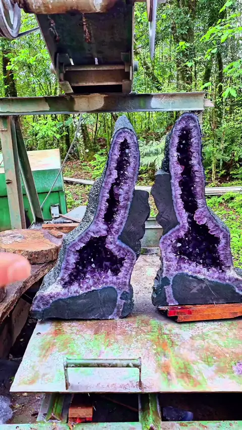 cortando uma geodo de ametista #ametista #garimpo #quartzo #pedraspreciosas #cristal
