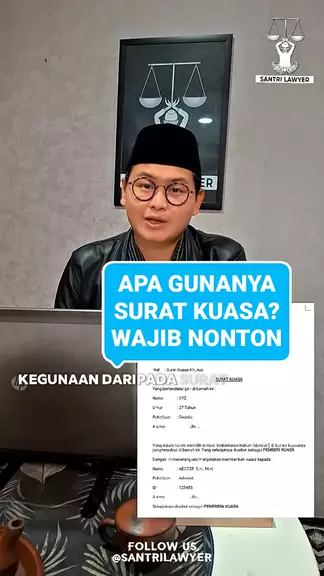 Pernah Dengar Surat Kuasa? Tapi Tahu Fungsinya Nggak? Dengan surat kuasa, kita bisa kasih izin ke pengacara buat bantuin kita di pengadilan. Biar nggak bingung aturan, dan hak kita tetap aman. Dasarnya pun jelas ada di Pasal 1792 KUH Perdata. Jangan anggap remeh proses hukum, lebih baik serahkan ke ahlinya. π Yuk, kenali peran surat kuasa dan pentingnya jasa pengacara! π² Follow @santrilawyer buat dapetin tips hukum praktis lainnya, semoga bermanfaat! #SantriLawyer #TipsHukum #SuratKuasa