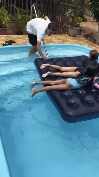 Brincando na piscina com a prima