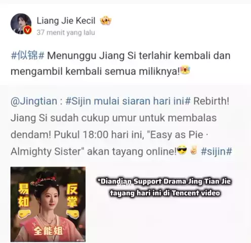 Pernah satu project bareng, Diandian Berikan Support kepada Drama Baru Jiejie Jing Tian tayang hari ini di Tencent video🥰 (Suka bngt kyk lht dd yg dulu lagi🤏) #梁洁 #liangjie #diandian #jingtian #chinesedrama # #4u