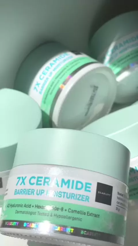 Kondisi kulit kamu kusam? Berjerawat? Berminyak? Kering? Apapun kondisi kulit kamu, tetep bisa pakai 7X Ceramide Barrier Up Moisturizer yaa💚 Yup, produk ini bisa dipakai all skin type. Didalamnya ada kandungan 7X Ceramide, 4D Hyaluronic Acid, Hexapeptide-8, dan Camellia Leaf Extract yang bisa bantu melembapkan kulit, bantu rawat skin barrier kulit, dan bantu mencerahkan kulit wajah😍 Kondisi kulit jadi sehat, masalah kulit dapat teratasi🤗 #Scarlett