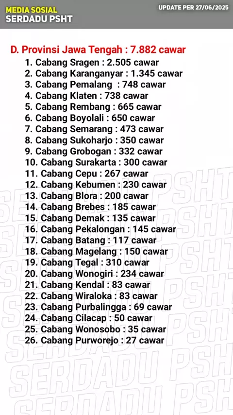 Welcome Back Satu Suro ❤️ Wayahe Kembang Terate Mekar 🪷 Hitung Cepat Calon Warga PSHT Tahun 2025 per 27 Juni 2025 dihimpun dari 5 provinsi dengan jumlah 64.915 Calon Warga Baru PSHT. Luar Biasa.. ‼️ Semoga bisa menjadi Warga PSHT yang berbudi pekerti luhur tahu benar dan salah. Bantu melengkapi dengan menulis jumlah cawar di cabangmu pada kolom komentar 🔥 #psht #pshtindonesia22 #pshtpusatmadiun # #